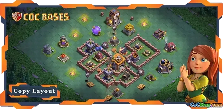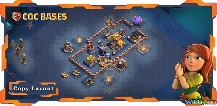 يتميز التصميم الأساسي الموصوف، والمشار إليه باسم BH07، بقاعة البناء التي تم وضعها بشكل استراتيجي في وسط الهيكل بأكمله. يسمح هذا الموقع المركزي بالدفاع الأمثل والإدارة الفعالة للموارد، مما يضمن حماية المبنى الأكثر أهمية بشكل جيد ضد الهجمات. تحيط بقاعة البناء العديد من الإعدادات الدفاعية التي تعزز القوة الإجمالية للقاعدة.