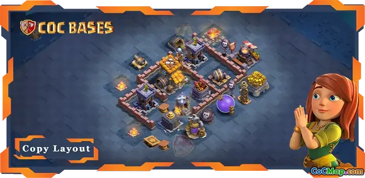 في زاوية القاعدة، تم وضع قاعة البناء لتعزيز أمنها. إن وضع قاعة البناء في هذا الموقع يجعل الوصول إليها أقل صعوبة بالنسبة للخصوم، الذين يحتاجون إلى وضع إستراتيجيات حول كيفية الوصول إليها أثناء التعامل مع الدفاعات المحيطة بها. يمكن لهذا التمركز أن يردع قوات العدو بشكل فعال عن تدمير قاعة البناء بنجاح، وهو أمر بالغ الأهمية لكسب النقاط في المعارك.