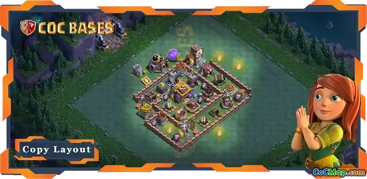 في التصميم الأساسي BH07، تقع قاعة البناء في موقع استراتيجي في وسط القاعدة. يعمل هذا الموضع المركزي على زيادة حماية قاعة البناء إلى الحد الأقصى، وهو أمر بالغ الأهمية للنجاح الشامل للقاعدة في اللعبة. يسمح الموضع بترتيب أكثر دفاعية للهياكل الأخرى المحيطة به، مما يؤدي إلى إنشاء نظام دفاع مدروس جيدًا.