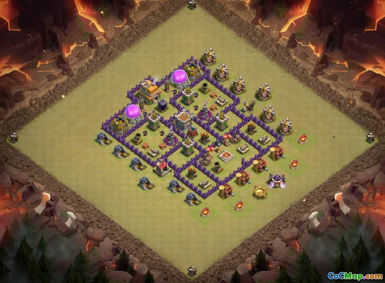 يتميز لعبة Clash of Clans بمجموعة متنوعة من التخطيطات الأساسية التي يمكن للاعبين استخدامها لتحصين قريتهم الأم ، خاصة في Town Hall 7. يوفر هذا المستوى للاعبين فرصة لتنظيم دفاعاتهم ومواردهم بشكل استراتيجي لتحمل الهجمات من المعارضين. هناك العديد من أنماط التخطيطات التي يمكن للاعبين الاختيار من بينها ، مثل تخطيطات القرية المنزلية المصممة لحماية الموارد المثلى ، وكذلك قواعد الحرب التي تهدف إلى هزيمة عشائر العدو خلال حروب العشيرة.