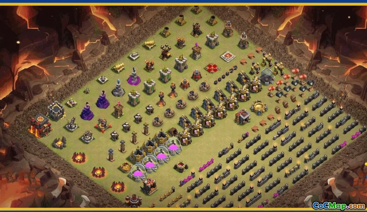 The base layout for Clash of Clans, specifically for Town Hall 10, offers players various strategic options to protect their resources and defend against attackers. These layouts are designed to optimize the placement of defenses like cannons, archer towers, and air defenses, creating a balanced defense system. Players often choose from different styles such as farming, war, or hybrid bases to suit their gameplay needs and to improve their chances of winning battles.