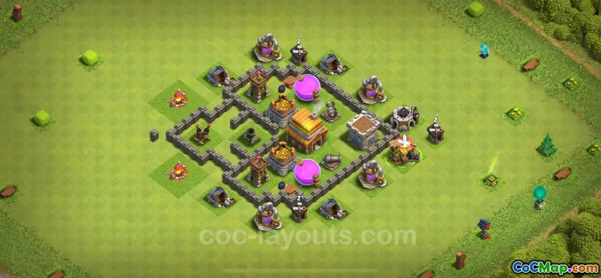 يتضمن تخطيط قاعدة ترقية TH4 max مزيجًا من الهياكل الدفاعية والموضع الاستراتيجي لإنشاء دفاع قوي. يعطي اللاعبون عمومًا الأولوية لتحديد مواقع مخازنهم ودفاعاتهم وأفخاخهم لضمان أقصى قدر من الحماية من هجمات العدو. من خلال إنشاء تخطيط جيد التخطيط، يمكن للاعبين حماية إكسيرهم وذهبهم، وهو أمر ضروري لمزيد من التقدم في اللعبة. يساعد التصميم الصحيح في صد المهاجمين والحفاظ على مستويات الموارد مع المساعدة في استراتيجيات الزراعة الفعالة.
