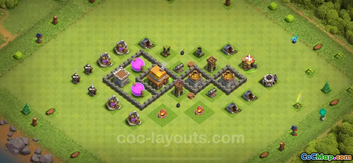 إحدى الإستراتيجيات الفعالة لقاعدة Town Hall من المستوى 4 هي إنشاء نظام تخزين مركزي. من خلال وضع مخازن الموارد - مثل الذهب والإكسير - بالقرب من قاعة المدينة مع إحاطتها بهياكل دفاعية، يمكن للاعبين أن يجعلوا من الصعب على الخصوم المطالبة بهذه الموارد. بالإضافة إلى ذلك، فإن وجود دفاعات مثل المدافع وأبراج الرماة المتمركزة لتغطية المخازن يمكن أن يوفر خط دفاع قوي ضد استراتيجيات الهجوم المختلفة التي قد يستخدمها الخصوم.
