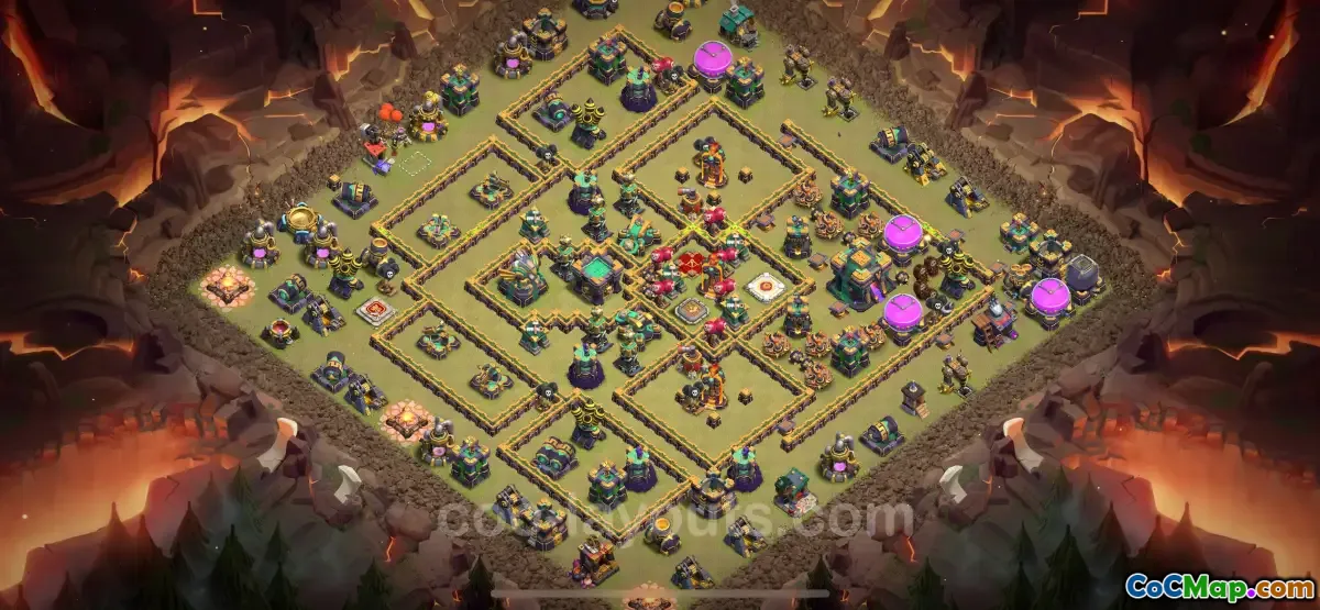 يتميز هذا التصميم الأساسي الخاص بهياكله الدفاعية القوية والوضع الاستراتيجي للموارد. لقد تم تصميمه ليكون مضادًا لكل شيء، مما يعني أن لديه القدرة على تحمل مجموعة واسعة من أنواع الهجوم، بدءًا من الهجمات الجوية وحتى الغزوات البرية. يقلل التصميم من تعرض المباني الدفاعية الرئيسية إلى الحد الأدنى، مما يخلق بيئة محصنة يمكنها ردع المهاجمين. بالإضافة إلى ذلك، تخضع مخازن الموارد لحراسة جيدة، مما يجعل من الصعب على الخصوم تأمين الغنائم أثناء الغارات.