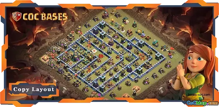 تم تصميم قاعدة الحرب هذه، المصنفة على أنها TH14، خصيصًا للدفاع ضد هجمات الثلاث نجوم في أوضاع مختلفة، بما في ذلك الحرب ودوريات حرب العشائر (CWL). ويؤكد التصميم على القدرات الدفاعية القوية، مما يضمن أن الخصوم سيجدون صعوبة في تحقيق انتصار ثلاث نجوم. يلعب الموقع الاستراتيجي لقاعة المدينة دورًا حاسمًا في هذا التصميم الأساسي.