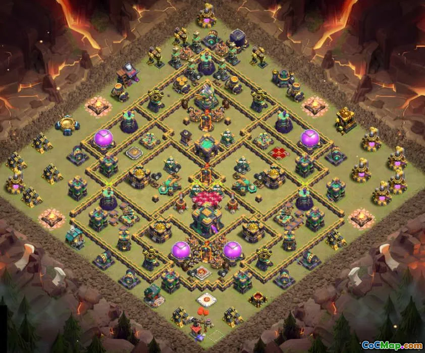 Explore effective Town Hall 14 base layouts for home, trophy, war, and map defense. Copy and customize your perfect Clash of Clans defense setup today.