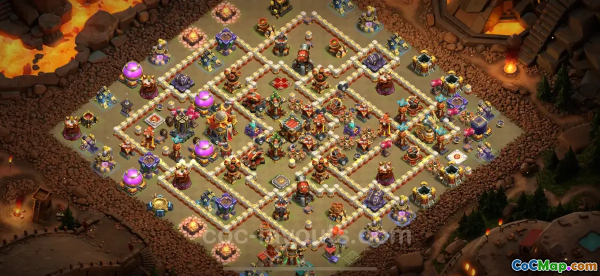 Shrnuto, základna Top Anti 2 Stars War pro Town Hall 16 je vytvořena tak, aby poskytovala robustní ochranu proti nepřátelským útokům, zejména těm, které zahrnují Electro Dragons. Pečlivé uspořádání obranných struktur spolu s účinnou protivzdušnou obranou a pastmi vytváří pro útočníky složitou výzvu. Přijetí takového základního rozložení může zlepšit obrannou strategii hráče během klanových válek a běžných bitev pro více hráčů, což v konečném důsledku pomůže zachovat integritu trofejí i zdrojů.