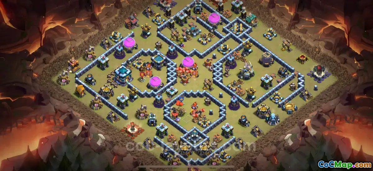 The Best Anti 3 Stars War Base for Town Hall Level 13 is designed to withstand attacks and protect against three-star strategies in Clash of Clans. This layout aims to strategically position defenses, traps, and key structures to inhibit the opponent's chances of achieving a three-star victory. The base design is optimized for the 2025 meta, ensuring it remains effective against the latest attack strategies used during Clan War Leagues (CWL).