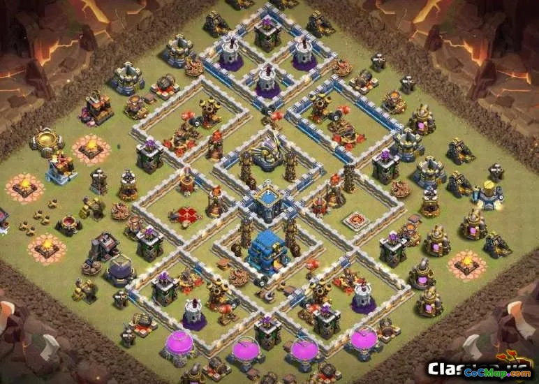 Jsou poskytovány různé typy rozložení základních, včetně válečných základen a trofejních základen přizpůsobených pro různé strategie a cíle. Válečné základny jsou navrženy především pro klanové války a snaží se minimalizovat procento destrukčních oponentů, kteří mohou dosáhnout, zatímco základny trofejí se zaměřují na maximalizaci počtu získaných trofejí. Využitím konkrétních návrhů map, které efektivně zahrnují obranu a pasti, mohou hráči posilovat své pozice a zvýšit své šance na vítězství v bitvách.