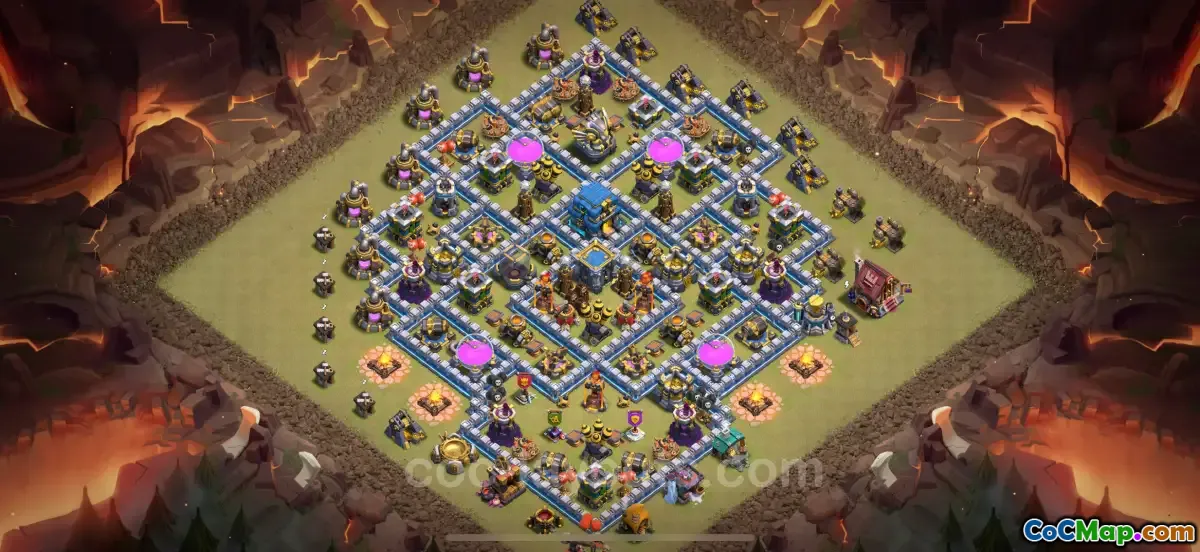 This base emphasizes a hybrid defense system, meaning it is optimized to prevent both ground and aerial attacks. With careful consideration in the placement of buildings and defensive structures, players have the advantage of making it challenging for attackers to find successful openings. The incorporation of walls and compartments further enhances the base's ability to absorb damage while safeguarding key resources and the Town Hall itself.