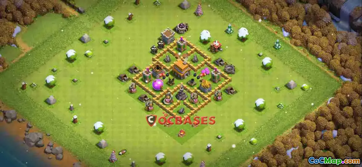 Discover the ultimate Town Hall 5 trophy base! Perfect for Clash of Clans, this anti-3 star design features symmetry for defense against giants and wizards.