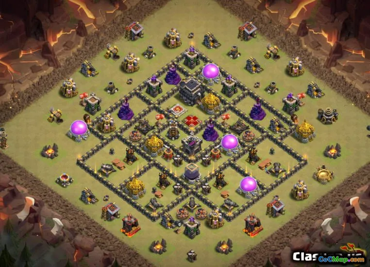 Základní rozložení pro střet klanů na radnici 9 zahrnují různé návrhy určené k optimalizaci obrany i správy zdrojů v domovské vesnici. Hráči na této úrovni mohou využít kombinaci obranných struktur a pastí, aby chránili své zdroje před útočníky, a zároveň efektivně umístili svou radnici k nalákání nepřátel nebo ji chránit. Strategické umístění budov může významně ovlivnit výkon v obranných i urážlivých scénářích.
