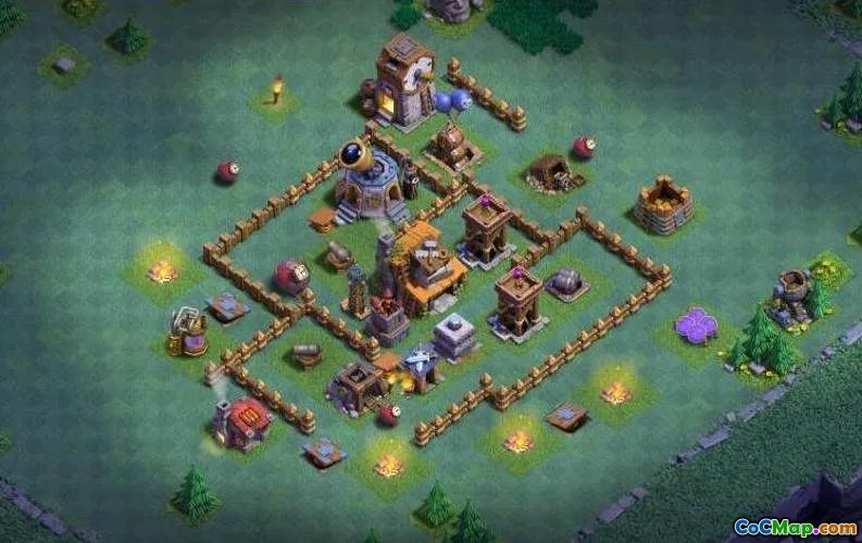 Hra Clash of Clans obsahuje různá rozvržení základny vhodná pro různé strategie, zejména pro hráče v Builder Hall 4. Na této úrovni se hráči musí zaměřit na posílení své obrany a budování efektivních zemědělských základen. Zemědělská základna je navržena tak, aby chránila zdroje před přepadením a zajistila, že si hráči budou moci udržovat stabilní zásoby pro upgrady a výcvik vojsk. Správné umístění obran, úložišť zdrojů a pastí může významně ovlivnit výsledek bitev a správu zdrojů.