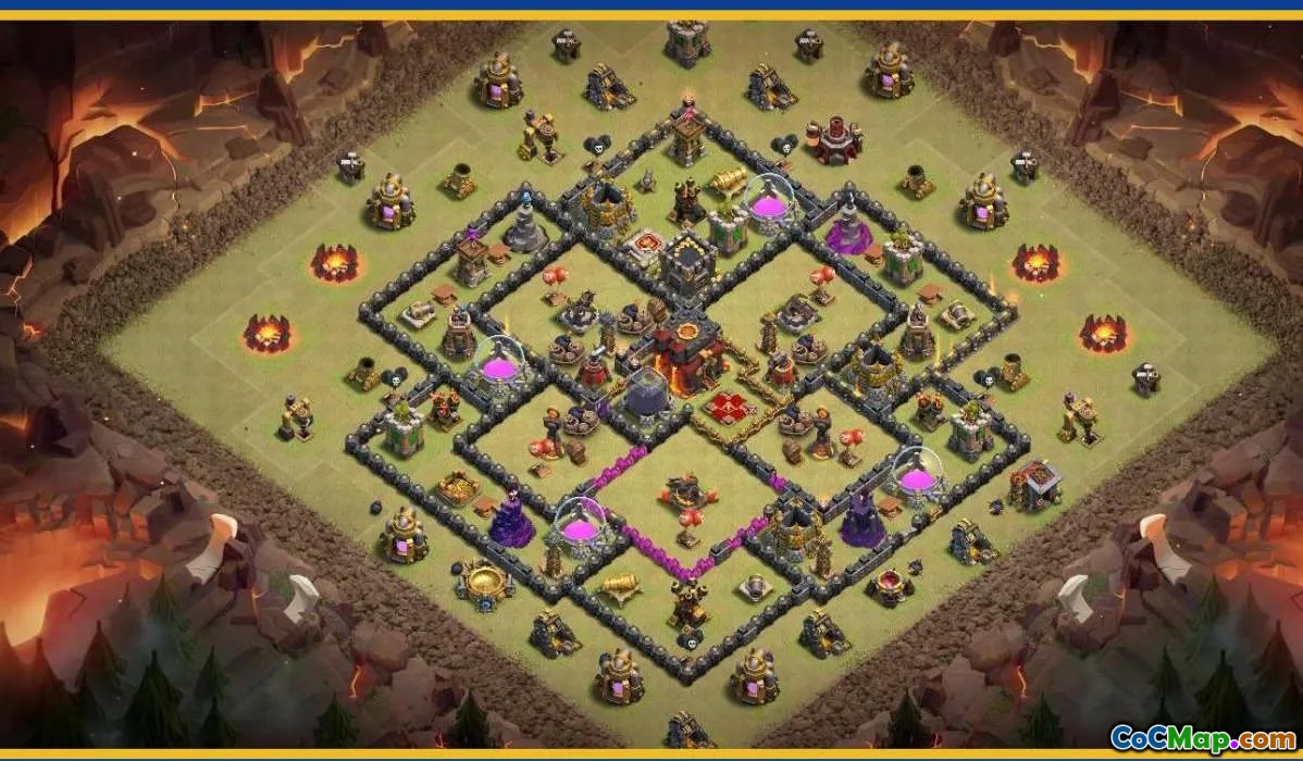 Download the best Clash of Clans Town Hall 10 base layouts! Home village, war, farming, trophy, and Coc map links for optimal defense and attacks.