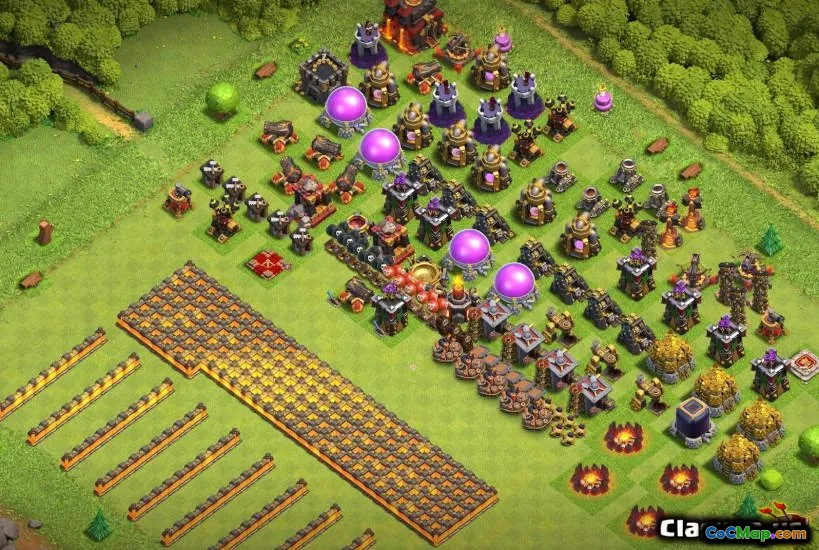 Clash of Clans nabízí řadu základů pro radnici 10 hráčů, kteří chtějí optimalizovat svou domovskou vesnici pro obrannou i zdroje. Na této úrovni radnice mají hráči přístup k novým budovám, pasti a obraně, které umožňují vytvoření efektivních rozvržení, které vydrží nepřátelské útoky. Jedním z populárních přístupů k navrhování rozložení základny je upřednostňování ochrany klíčových zdrojů, jako jsou sběratelé dolů a elixírů, a zároveň zajišťuje, aby centrální umístění samotné radnice odradilo útočníky od snadno získávání trofejí.