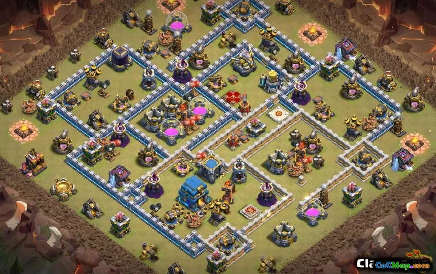 Hra Clash of Clans obsahuje různá základna určená pro různé účely, zejména na radnici 12. Hráči mohou optimalizovat svou domovskou vesnici, aby chránili zdroje, posílili obranné schopnosti a vytvořili strategii pro útoky na soupeře. Každé rozložení základny slouží jedinečné funkci a hráči často hledají nejlepší konfigurace, aby uspěli v obranných i urážlivých scénářích. Správný design může hru výrazně ovlivnit, protože pomáhá při odstranění útoků a udržování trofejí.