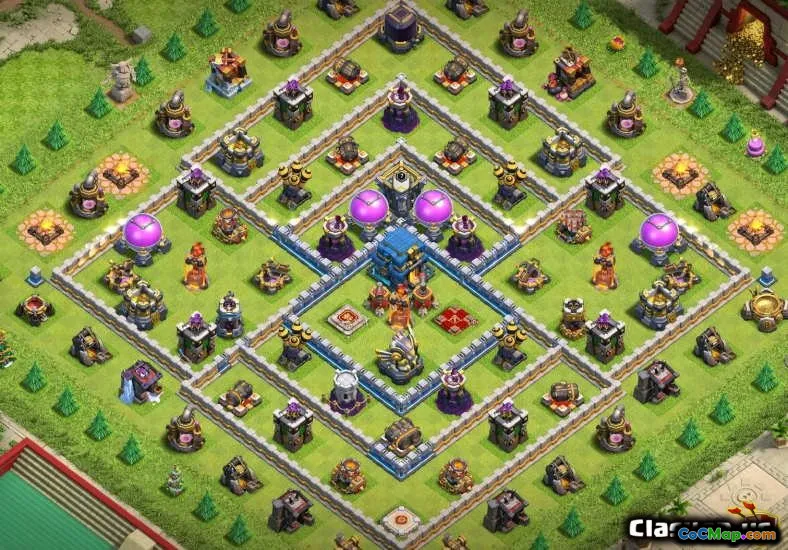 Rozložení domácí vesnice jsou zásadní pro ochranu osobních aktiv a zajištění úspěšné obrany proti nepřátelským nájezkům. Hráči radnice 12 musí zvážit strategické umístění obranných struktur, pastí a budov zdrojů. Optimální rozložení nejen chrání radnici, ale také rovnoměrně distribuuje obranu po celé vesnici, aby pokryla potenciální útočné trasy. Kromě toho hráči často sdílejí a přizpůsobují základní mapy, což umožňuje dynamický přístup k designu vesnice, který se může vyvíjet s novými aktualizacemi a strategiemi hry.