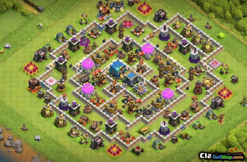 Hra Clash of Clans umožňuje hráčům navrhovat a používat různá základna, zejména pro radnici 12 v domovské vesnici. Promyšlené rozložení základny je zásadní pro obranu a řízení zdrojů a pomáhá hráčům chránit jejich trofeje a zdroje před nepřátelskými útoky. Radnice 12 má jedinečné funkce, které mohou hráči využít k vytvoření efektivních zemědělských a trofejních základen.