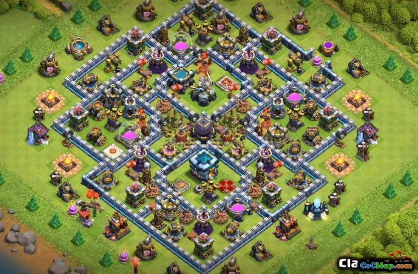 Clash of Clans, populární mobilní strategická hra, obsahuje různá základní rozložení, která mohou hráči efektivně využívat na radnici 13. Na této úrovni mají hráči přístup k posílené obraně a vojskem, což činí základnou pro obranu i pro správu zdrojů. Dobře navržené rozložení domácí vesnice může chránit zdroje před nepřátelskými nájezdy a zároveň poskytnout silnou obranu proti útokům. Different layouts are tailored for specific styles of gameplay, whether the player is focused on farming or trophy pushing.