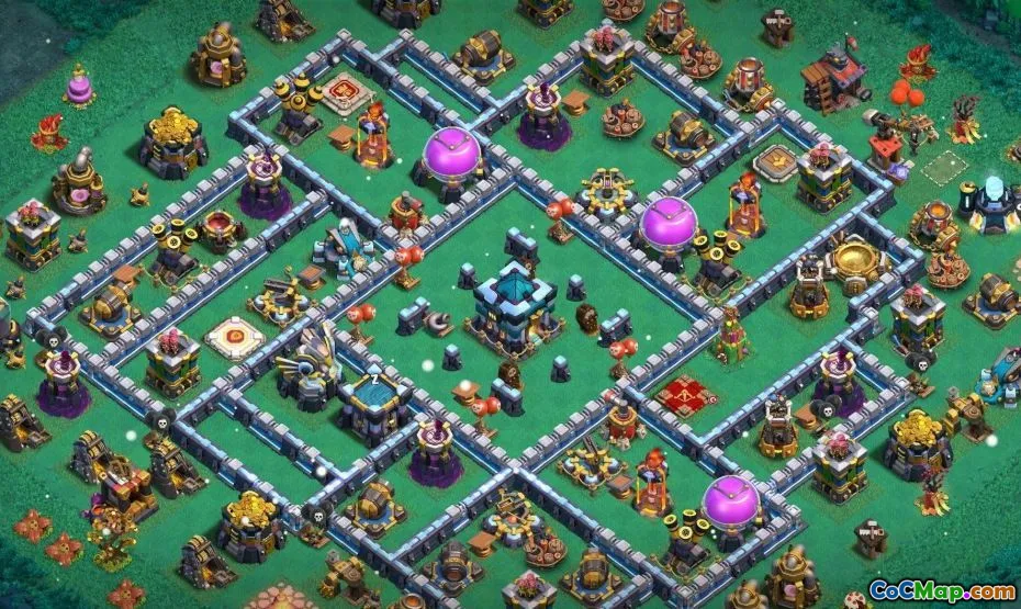 Radnice 13 představuje novou úroveň složitosti a umožňuje hráčům vytvářet jedinečné domácí vesnice, které slouží jako centrální centrum pro budování obrany a správu zdrojů. Hráči se mohou rozhodnout pro různé typy základů, včetně válečných základů, které jsou speciálně navrženy pro klanové války, trofejní základny zaměřené na maximalizaci trofejí získaných z vítězství, a zemědělské základny, které upřednostňují ochranu zdrojů. Výběr správného rozložení je zásadní, protože dobře navržená základna může výrazně zvýšit šance hráče na odolat nepřátelským útokům a udržovat silné obranné postoje.