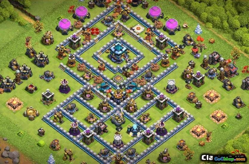 The Clash of Clans Game obsahuje řadu strategických prvků, včetně různých rozvržení pro hráče, které je třeba použít v jejich domovské vesnici a během válek. Pro radnici 13 mají hráči přístup k posílené obraně, vojskům a budovám, které umožňují složité návrhy základny. Dobře vytvořené rozložení základny je nezbytné pro ochranu zdrojů a trofejí před útočníky a hráči často hledají optimální nastavení, aby maximalizovali své obranné schopnosti. Základní rozložení je zásadní, protože mohou výrazně ovlivnit výkon hráče v zemědělství i konkurenční hře.