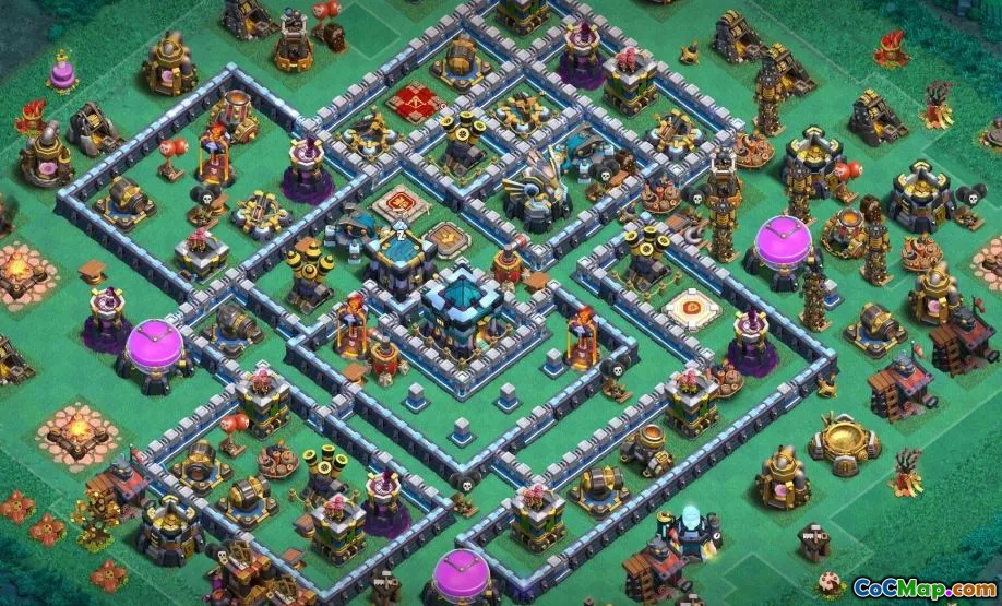 Hra Clash of Clans obsahuje různá základní rozložení speciálně navržená pro různé účely a strategie, zejména pro hráče na radnici 13. Tato úroveň zavádí nové budovy, upgrady a strategie, které jsou nezbytné pro optimalizaci obrany v kontextu domácí vesnice i války. Hráči si mohou vybrat z celé řady rozvržení přizpůsobených pro zvýšení obrany trofeje nebo vytvoření účinných válečných základen, které vydrží nepřátelské útoky při maximalizaci jejich ochrany zdrojů.