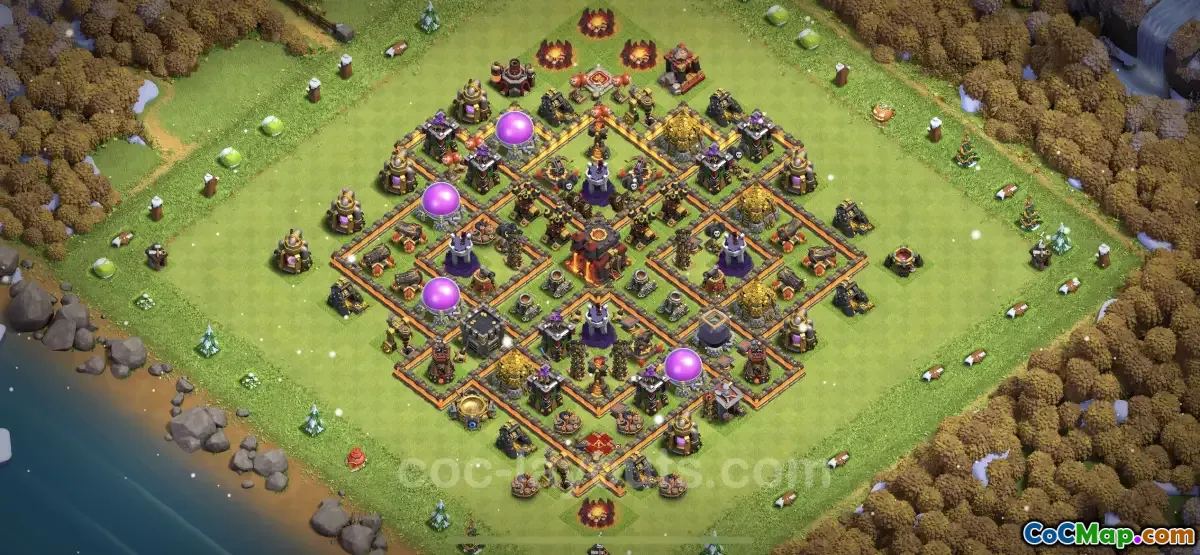 The Clash of Clans game offers players the chance to design and construct their own bases to defend against attacks and collect trophies. Among the various base designs available, the Town Hall level 10 (TH10) base stands out as a popular choice for players aiming to optimize their defense while simultaneously collecting trophies. One particular configuration emphasized is a hybrid base that is touted for its effectiveness against a wide array of attack strategies. This type of design is known for balancing both defense and resource protection.