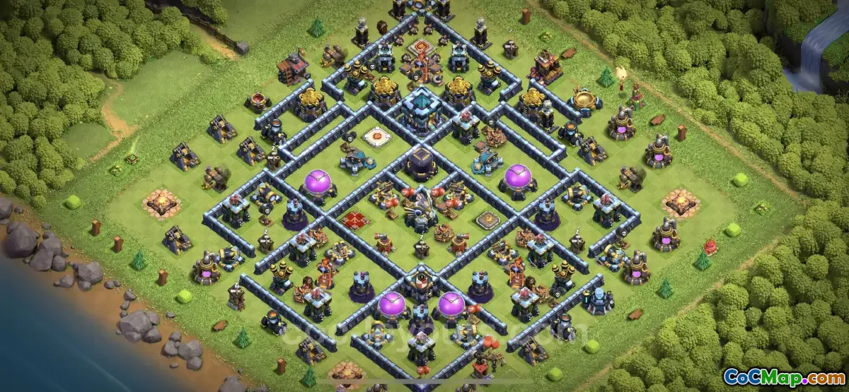 The Farming Base for Town Hall Level 13 in Clash of Clans is specifically designed to optimize resource collection and defense against various types of attacks. This base layout incorporates strategies that protect against different threats, ensuring that players can safeguard their resources effectively. It is particularly beneficial for those looking to maintain a steady flow of essential materials while minimizing losses during enemy attacks.