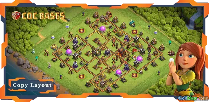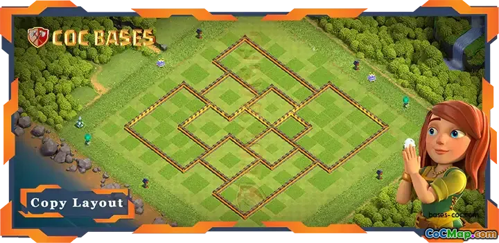 This layout features well-placed defenses, traps, and walls that create a formidable barrier for attackers. The core of the base often contains the Town Hall, surrounded by key defensive structures such as Inferno Towers, X-Bows, and air defenses, which work together to cover all angles of attack. Additionally, the layout utilizes compartments that force attackers to use more troops than they may initially plan, leading to potential overextension and easy defense against their strategies.