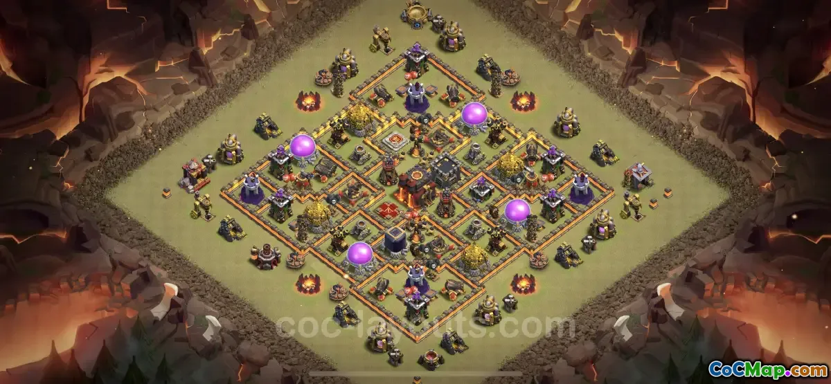 One popular base design for TH10 features a centralized Clan Castle and Eagle Artillery. This positioning compels attackers to engage these crucial defenses first, often leading them to spread their troops thinly across the base. The buildup of defensive firepower ensures that attackers will struggle to destroy both the Town Hall and the other key structures, resulting in fewer two-star attacks.