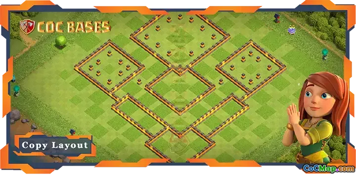The layout also includes features such as compartmentalization and effective use of traps. By creating compartments within the base, players can slow down enemy troops and prevent them from easily accessing vital structures. The strategic placement of traps, such as bombs and spring traps, further enhances the base's defensive capabilities. The design prioritizes the protection of resources and the Town Hall, making it challenging for opponents to achieve a three-star victory by targeting these key areas. Overall, this layout encourages a defensive mindset that prioritizes survival over resource farming.
