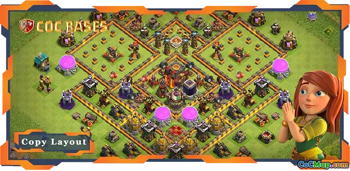 The "Top Anti 3 Star Base TH10 with Link" layout in Clash of Clans is specifically designed to protect Town Hall 10 players from being defeated by enemy attacks aiming for three stars. In Clash of Clans, defenses are crucial for maintaining a stronghold against opponents, and a well-structured base layout can make a significant difference in protecting resources and trophies. This layout incorporates defensive strategies to minimize vulnerabilities, making it harder for attackers to achieve their full star potential during raids.