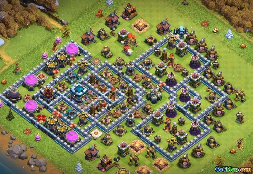 The Clash of Clans Game obsahuje rozmanitou škálu rozvržení, které mohou hráči využít k optimalizaci svého výkonu při přestupku i obraně. Jedno takové rozvržení je speciálně navrženo pro radnici 13, kritická fáze, kdy hráči mají přístup k pokročilým budovám a vojákům. Na této úrovni se pro ochranu zdrojů a udržování vysokého počtu trofejí stává nezbytným vytvořením promyšleného rozložení základny. Hráči najdou různé strategie pro stavbu své domovské vesnice se zaměřením na umístění klíčových struktur, jako je radnice, obrana a skladování zdrojů, způsobem, který maximalizuje ochranu a zvyšuje celkovou efektivitu.