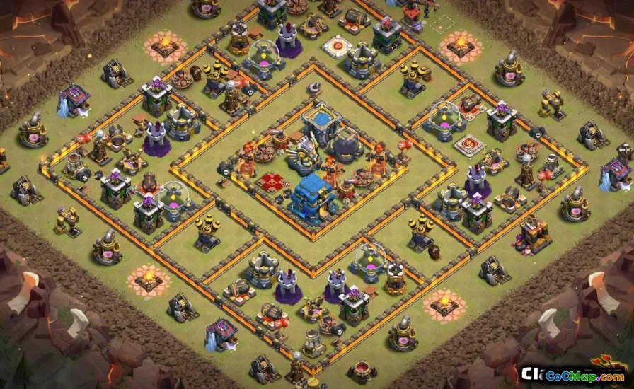 Pokud jde o rozložení základny, hráči obvykle rozlišují mezi zemědělskými základnami a trofejními základy. Zemědělské základny jsou navrženy tak, aby chránily zdroje a zároveň umožňovaly hráčům shromažďovat co nejvíce kořistí. Na druhé straně se základny trofejí zaměřují na maximalizaci defenzivních schopností pro udržování nebo zvyšování trofejí. Výběr rozvržení často závisí na současných cílech hráče ve hře, ať už to má rychle akumulovat zdroje nebo vylézt na řady v konkurenčním trofejním systému.