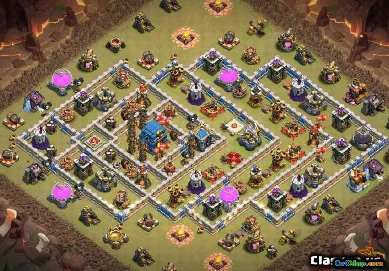 V Clash of Clans se rozložení domácí vesnice týká primárně ochrany zdrojů a udržování účinné obranné strategie. Hráči na radnici 12 musí zvážit umístění svých skladeb, obrany a pastí, aby odradili útočící soupeře. Mezitím je rozložení válečné základny určeno pro klanové bitvy, které upřednostňuje obranu proti nepřátelským útokům, aby maximalizovala hvězdy získané během válek. Trophy základna se navíc zaměřuje na zajištění trofejí tím, že je pro soupeře obtížné dosáhnout tříhvězdičkových vítězství, čímž se zachovává hodnocení her.