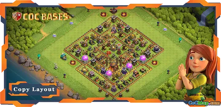The Top Hybrid Base for Town Hall 10 in Clash of Clans is specifically designed to provide excellent defense against various attack strategies. This layout emphasizes a balance between protecting resources and maintaining a strong defense against troop invasions. The base incorporates strategically placed defenses, ensuring that both defensive structures and resource storages are sufficiently protected from enemy attacks.