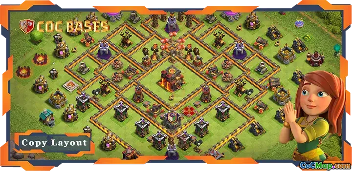 The Top Base TH10 layout in Clash of Clans is designed to provide a strategic advantage for players, especially those looking to protect their Town Hall from two-star attacks and various other assault strategies. This base configuration is known for its sturdiness, effectively thwarting enemies while ensuring that the central Town Hall remains well-guarded. The layout comprises a blend of defensive structures, traps, and strategic positioning, which together create a formidable fortress against attackers. The aim of this base design is to create confusion and difficult paths for attackers, forcing them to waste valuable time and resources.
