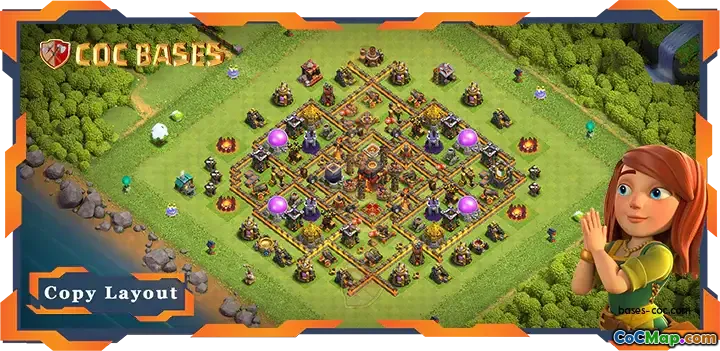 Celkově je toto vícedílné rozvržení pečlivě navrženo tak, aby vytvořilo vyváženou obranu. Díky integraci základních zdrojů, silných obranných věží a ochranných zdí účinně odrazuje útočníky a pomáhá hráči udržovat těžce vydělané zdroje a trofeje. Farmářská základna TH10 stojí jako robustní struktura schopná odolat různým útočným strategiím.