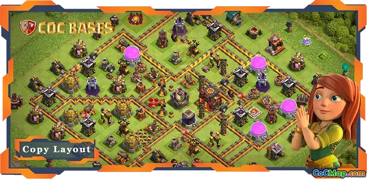 This hybrid base combines elements of farming and defense, providing a balanced approach that can deter attackers from making a successful raid. It features strategically placed defenses, traps, and walls that create obstacles for opponents trying to reach the core of the base. The layout is praised for its adaptability against different attack techniques, whether they involve air units or ground troops. Players seeking to protect their resources effectively will find this layout highly suitable for their needs.