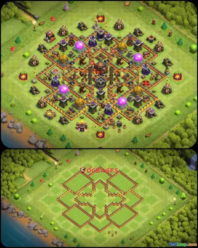 Discover the ultimate Town Hall 10 hybrid base for Clash of Clans! Explore our symmetric design and copy the base link for unbeatable defense.