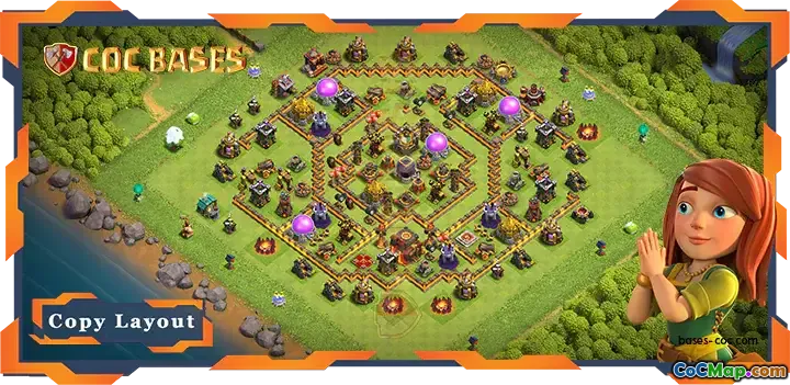 Overall, this TH10 farming base featuring a hybrid layout serves as an effective blueprint for players looking to enhance their defensive strategies. By strategically placing the town hall and surrounding defenses, players can protect their resources and trophies more successfully. The thoughtful arrangement of buildings creates a well-rounded defense that deters attackers and preserves the player's hard-earned assets in Clash of Clans.