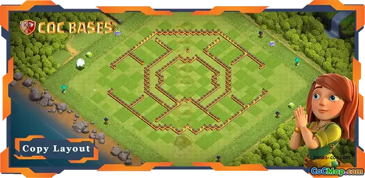 The center area of the base acts as a connective hub that integrates the outer defenses with core buildings, allowing for a cohesive defense strategy. This layout ensures that even if an attacker manages to penetrate the outer defenses, they must still contend with the strong central defenses, which are designed to make it difficult for them to achieve their objectives without significant risk.