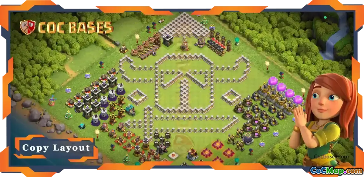 The Clash of Clans game features a unique and engaging component where players can design their bases for defense and strategy purposes. One creative design approach players often use is creating layouts that are visually amusing or humorous. An example of this is the TrollFunny Base for Town Hall level 11 (TH11), which has garnered attention due to its comedic design.