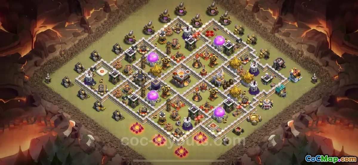 Článek pojednává o vysoce efektivním základním rozložení Town Hall 11 navrženém pro Clash of Clans, konkrétně pro konkurenční prostředí Clan War Leagues (CWL). Rozložení klade důraz na solidní obranné strategie proti běžným typům útoků, včetně těch využívajících Electro Dragons. Využitím kombinace obran se design snaží minimalizovat poškození, které mohou protivníci způsobit během bitev.