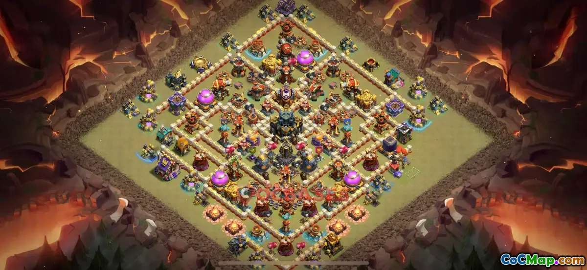 Při stavbě válečné základny TH 17 je zásadní zvážit rozložení budov a obranných struktur. Rozložení klíčových obranných budov pomáhá vyhnout se zničení více budov jediným kouzlem nebo nasazením jednotek. Dobře navržená základna bude efektivně využívat své pasti k ochraně zdrojů a radnice a zároveň nasměrovat útočníky do zón zabíjení, kde může obrana zaměřit svou palbu.