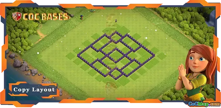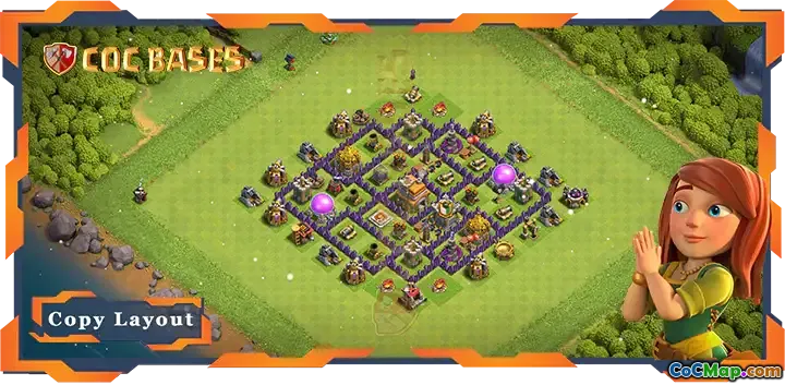 The design emphasizes the protection of key resources while maintaining a layout that allows for quick repairs and easy access. This base is ideal for maximizing resource gains and minimizing loot loss during daily farming, all while providing a solid defense against common attacks at town hall level 7. The provided link offers easy access to the full layout for immediate implementation in your Clash of Clans base setup.