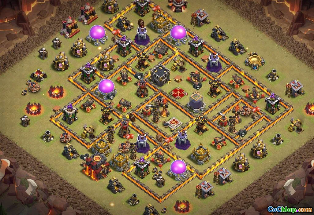 Clash of Clans poskytuje hráčům řadu základních rozvržení určených pro různé účely, včetně struktur radnice 10. Na této úrovni radnice mohou hráči optimalizovat svou domovskou vesnici, aby zvýšili ochranu zdrojů, základní obranu a celkovou strategickou hru. Rozložení hraje klíčovou roli v tom, jak efektivně může hráč odrazit útoky a akumulovat zdroje, což způsobí, že výběr základny významně postupuje ve hře.