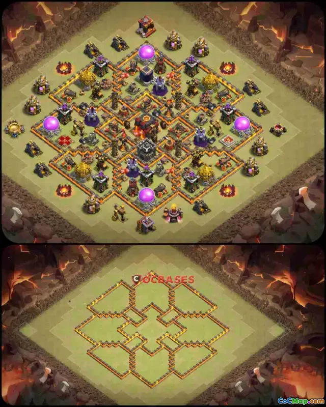 Discover the ultimate Town Hall 10 hybrid base for Clash of Clans! Explore our symmetric design and copy the base link for unbeatable defense.