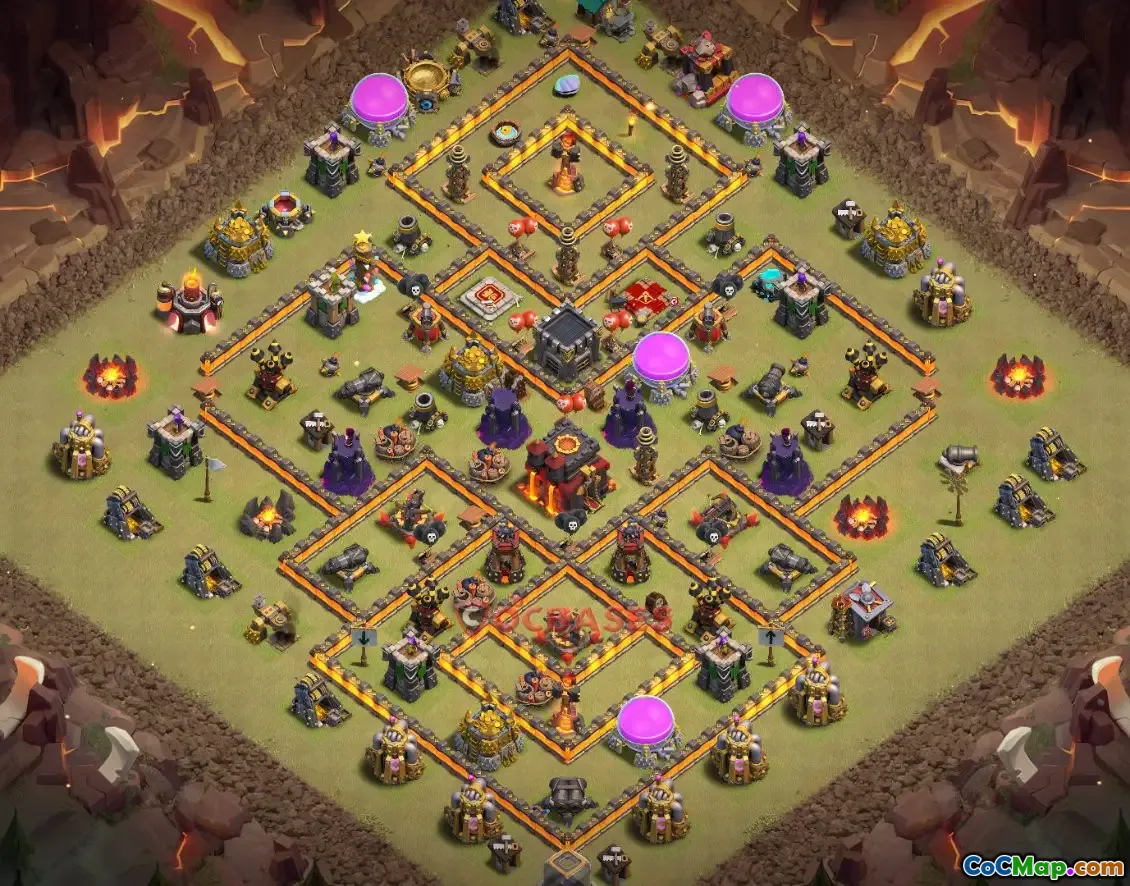 In a hybrid Town Hall 10 war base, the layout aims to offer both defensive capabilities and resource protection. This balanced approach is crucial during wars, as players need to defend against opponents while maintaining their wealth for upgrades and troop training. A hybrid base layout typically includes strategically placed defensive buildings that are able to cover multiple angles of attack, making it difficult for opponents to find weak points.