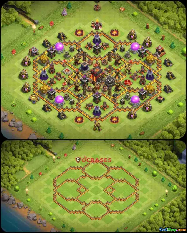 Discover the ultimate Town Hall 10 hybrid base for Clash of Clans! Explore our symmetric design and copy the base link now to protect your resources.